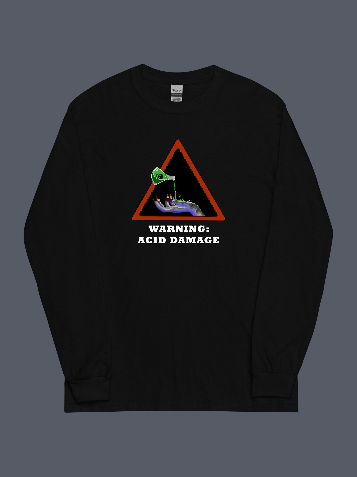 “Not all acids are made from a single material…and not all acid damage designs are as good as ours! Get it on a t-shirt, a hoodie, or a long sleeve tee – the choice is yours!